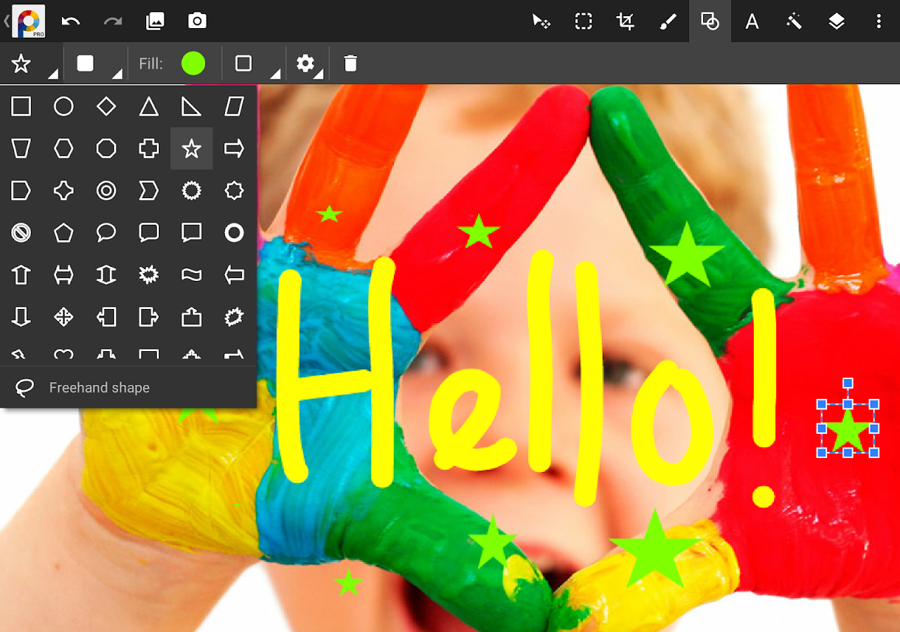 • metin tabanlı grafik ve serbest çizim ile resimlerinizi geliştirin.